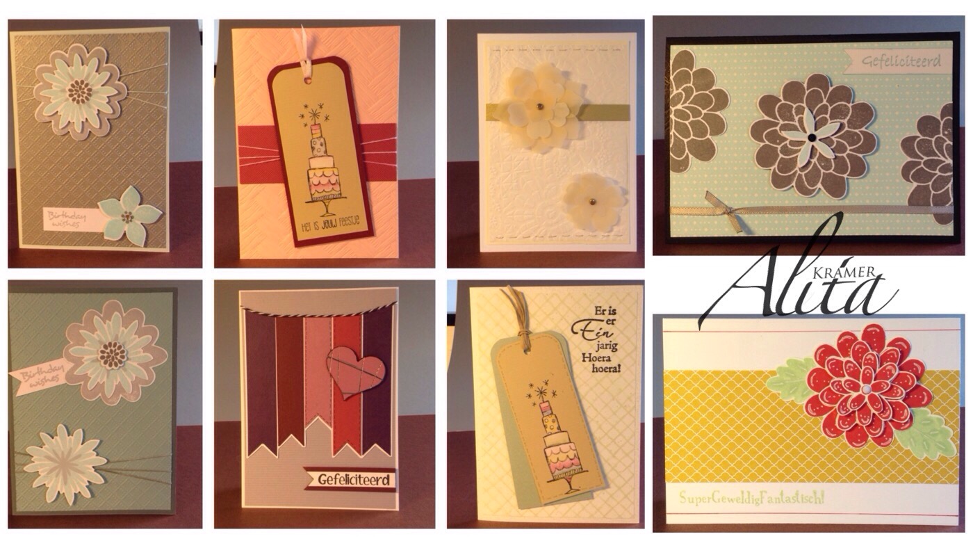 Ik heb de afgelopen dagen nog meer kaartjes gemaakt. Ik heb mooie bloemen ponsen en stempels gebruikt van Stampin up in diverse kleuren combinaties. Heb je vragen dan hoor ik het graag.