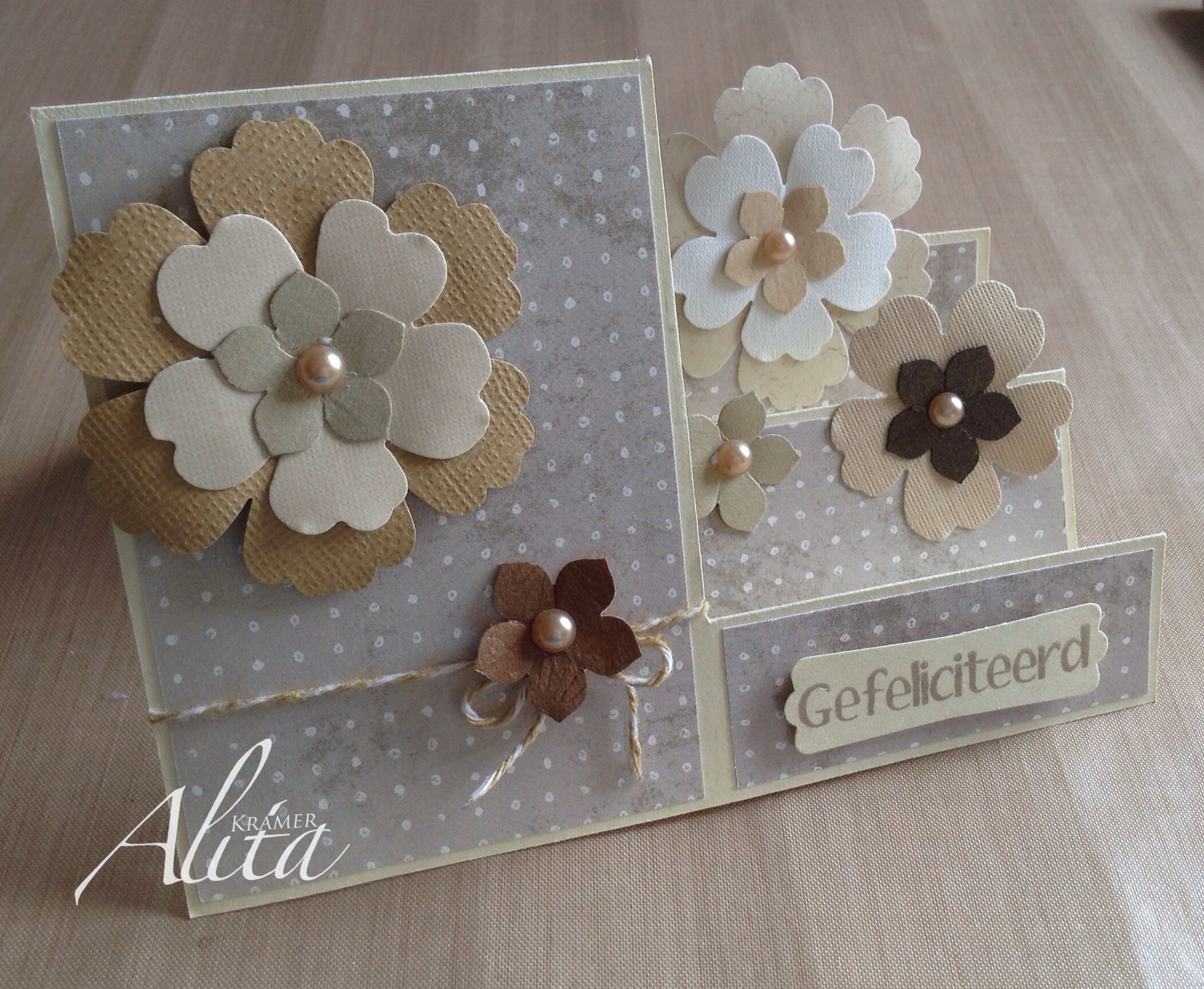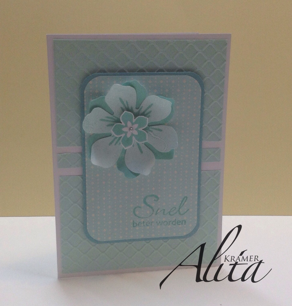 Ik zag dit idee als een stans en ik besloot een eigen versie te maken met een scoring board. Ik zal er ook binnenkort een video van maken en aan dit bericht toevoegen. De bloemen zijn ponsen van Stampin Up. Het papier is hoofdzakelijk uit mijn restjes bak. Het formaat van de kaart is een dubbelgevouwen A5.