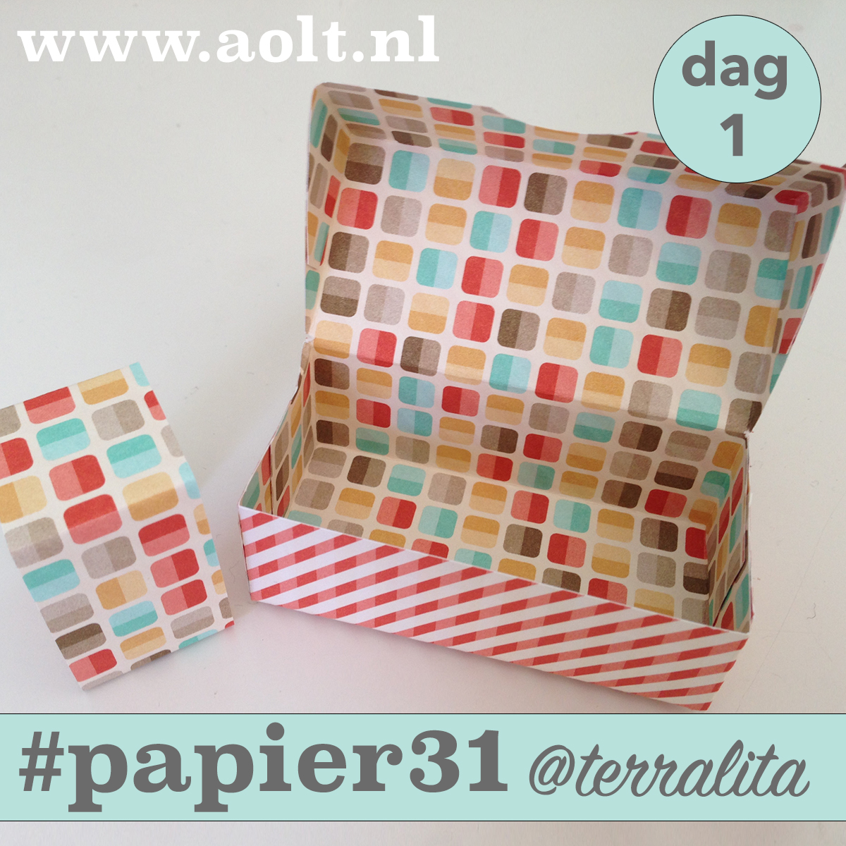 Welkom bij de eerste dag van #papier31. In de maand mei ga ik elke dag een leuk project plaatsen op basis van een vel papier van 6×6 inch (15×15 cm) Vandaag maken we een klein rechthoekig doosje. Heb je weinig materiaal, maar wil je wel meedoen? Neem dan contact met me op want ik heb ook complete pakketjes.