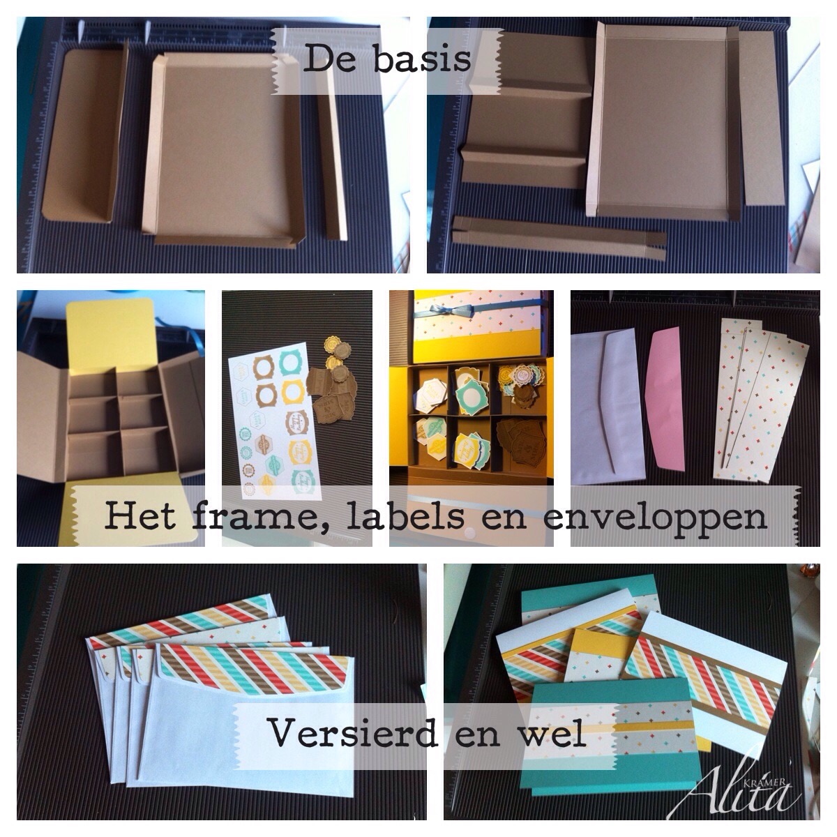 Cadeaudoosje met kaarten enveloppen en labeltjes.